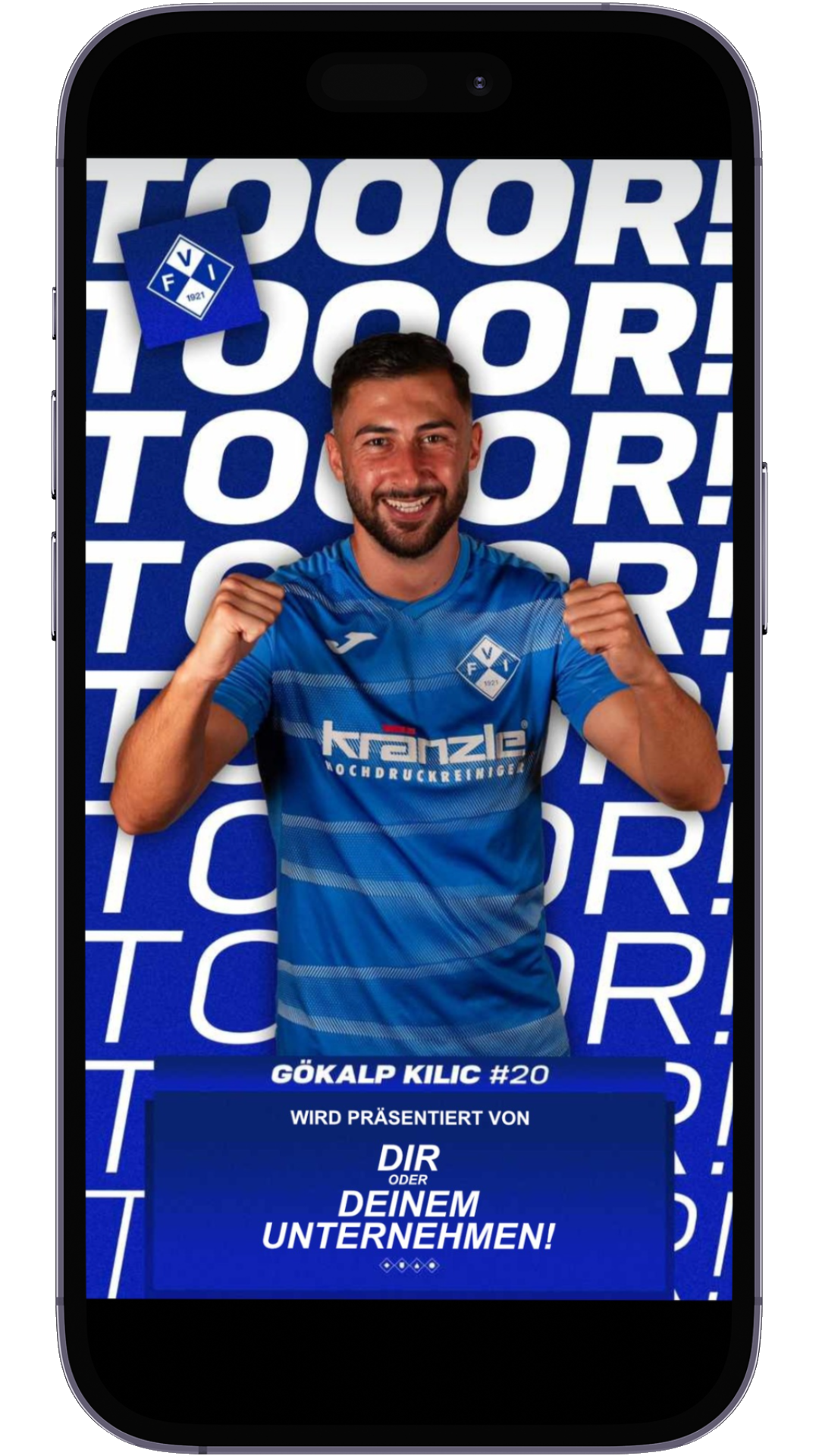 Unterstütze den FV Illertissen mit deinem Stein auf der Sponsorenwand 89+1 und präsentiere das Tor der Mannschaft!