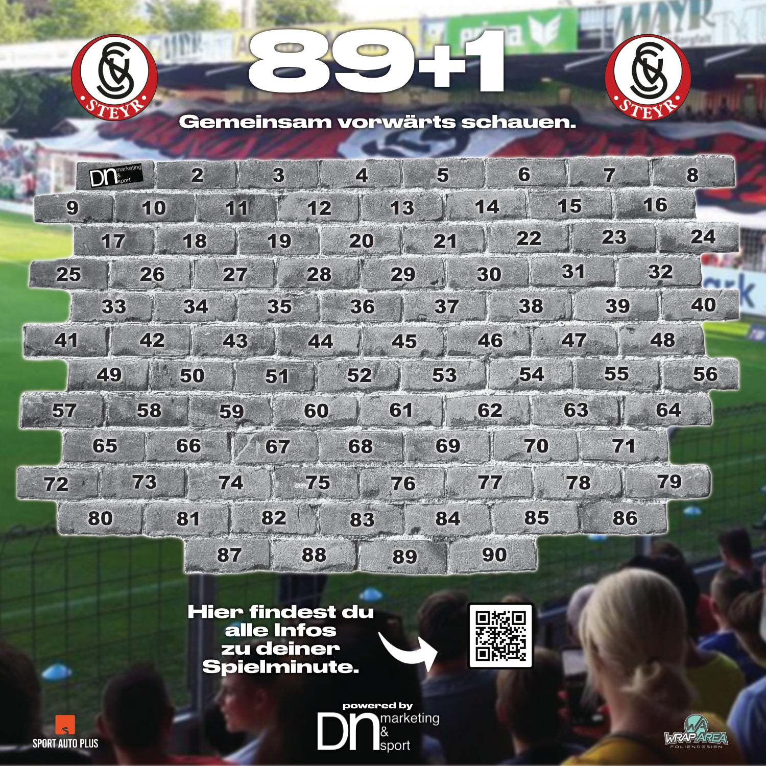 Unterstütze den SK Vorwärts Steyr mit deiner Spielminute auf der Sponsorenwand 89+1 und präsentiere das Tor der Mannschaft!