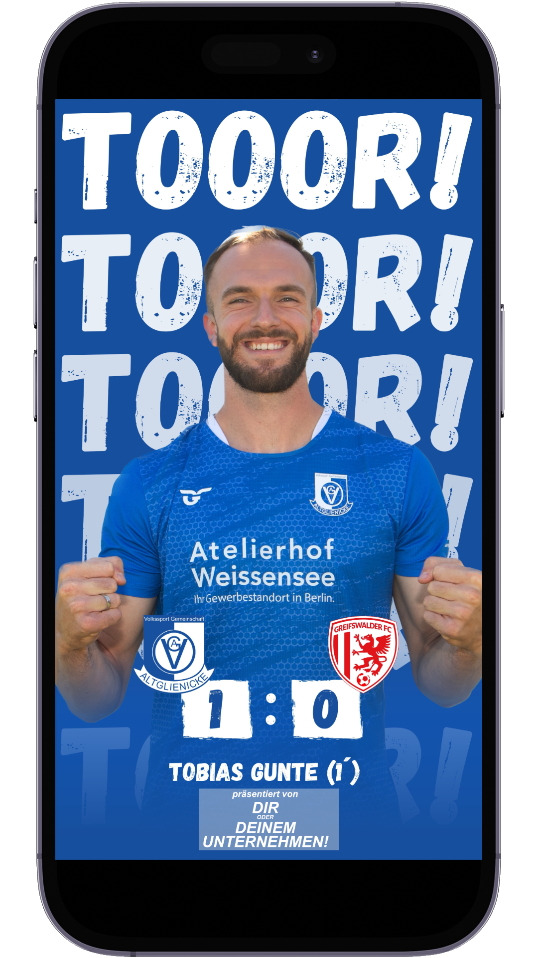 Unterstütze die VSG Altglienicke mit deiner Spielminute auf der Sponsorenwand 89+1!